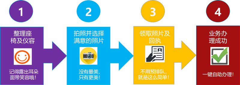 3、根據(jù)語音提示進(jìn)行拍照“四步走”,全自助化辦理。