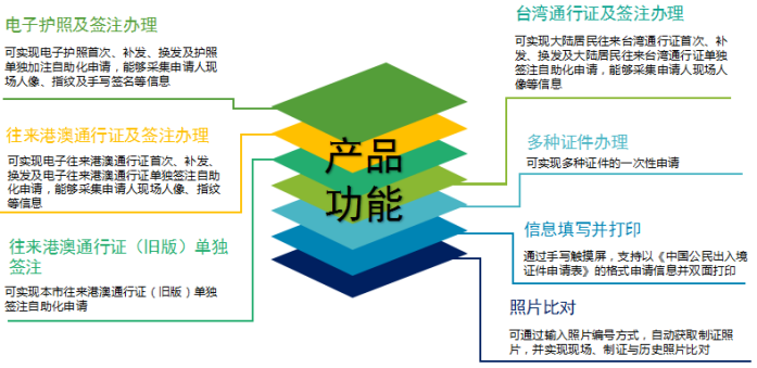 自助簽注、身份信息讀取、身份核驗(yàn)、受理、打印、芯片讀寫的高速全自動(dòng)化過程,取代了原有依靠人工化操作的復(fù)雜繁瑣過程方式。