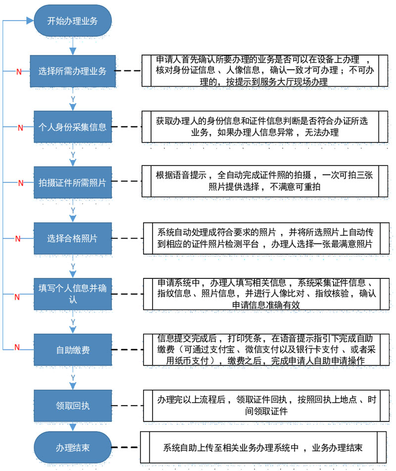 出入境智能一體機(jī)可辦理證件照自助拍照、內(nèi)地居民護(hù)照信息采集及受理、港澳臺通行證信息采集及受理三大業(yè)務(wù),具體如下圖所示:
