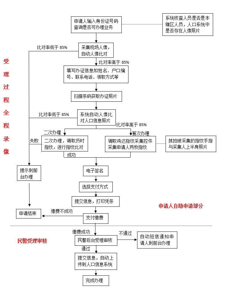 1)申請人首先確認(rèn)是否可以在自助申請機(jī)上辦理,核對身份證信息、人像信息,確認(rèn)一致才可辦理。不可辦理,提示到前臺受理。