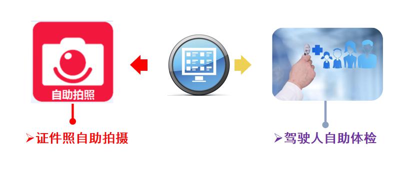 智慧拍照體檢一體機(jī)可辦理駕駛?cè)俗灾恼?、自助體檢業(yè)務(wù),具體如下圖所示: