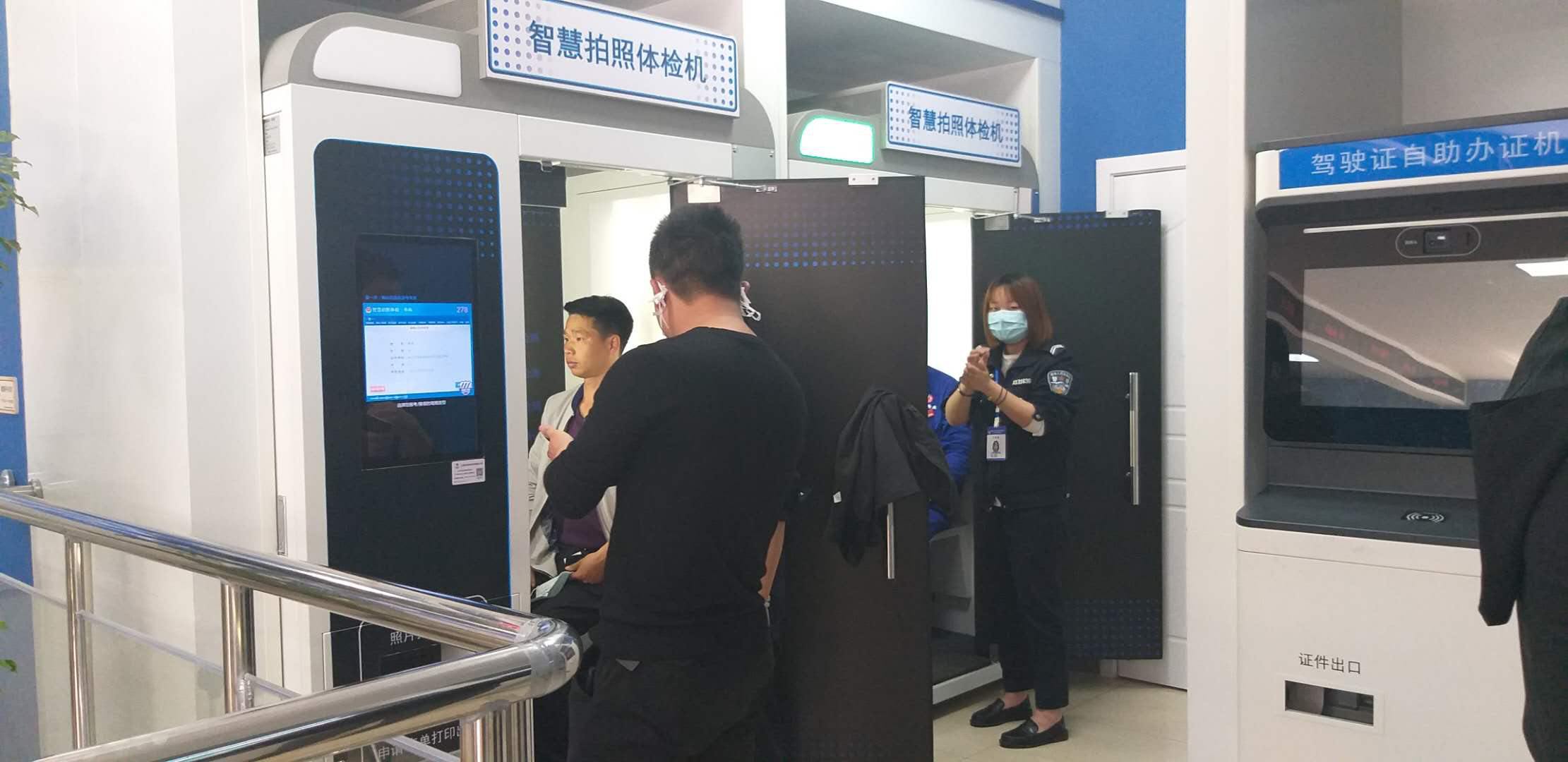 神盾衛(wèi)民智慧拍照體檢機在紅谷灘大隊交管服務大廳為群眾提供自助體檢、照相服務,高科技智能化的技術,方便群眾享受到便捷、實惠的自助服務。