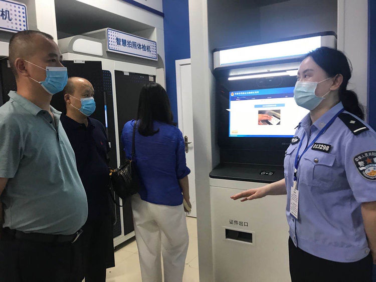 前臺(tái)民警向黃華鋒同志一行介紹了大隊(duì)智慧交管服務(wù)大廳的整體布局、功能分區(qū)、窗口設(shè)置等情況,詳細(xì)講解了“一窗辦、一次辦、網(wǎng)上辦、自助辦、預(yù)約辦”的模式運(yùn)行及成效,播放了“預(yù)約辦”的操作流程視頻,并邀請(qǐng)參觀人員親身體驗(yàn)了自助駕駛?cè)梭w檢機(jī)、業(yè)務(wù)辦理機(jī)和制證機(jī)的相關(guān)功能。