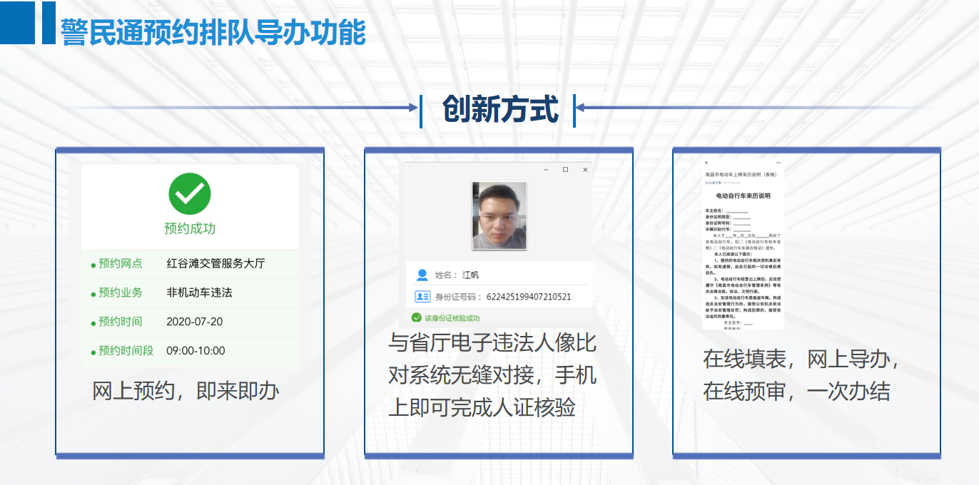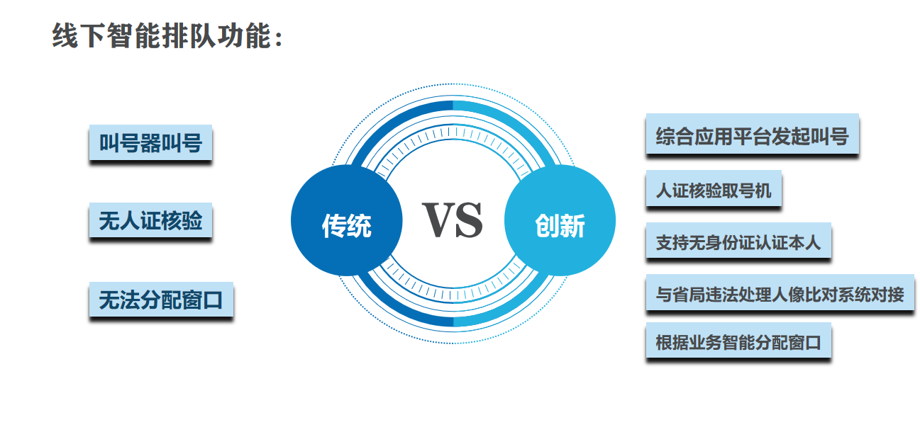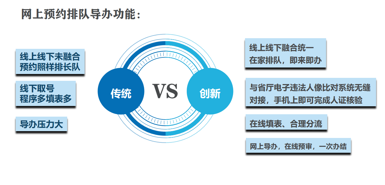 平臺可部署到全市分所,形成立體化服務網(wǎng)絡,打造“車管所智 慧云導航系統(tǒng)” ,依托微信公眾號,匯聚群眾所需辦理的業(yè)務類型、 自動判斷業(yè)務規(guī)則、地理位置信息、網(wǎng)點服務能力、群眾年齡、身份 等數(shù)據(jù)形成“大數(shù)據(jù)模型”,智能推薦群眾前往距離最近、時間最短 的分所或自助設(shè)備上辦理業(yè)務。最終實現(xiàn)群眾網(wǎng)上辦、就近辦、一次 辦的目標,同時將現(xiàn)在車管所從門庭若市到門可羅雀的轉(zhuǎn)變。