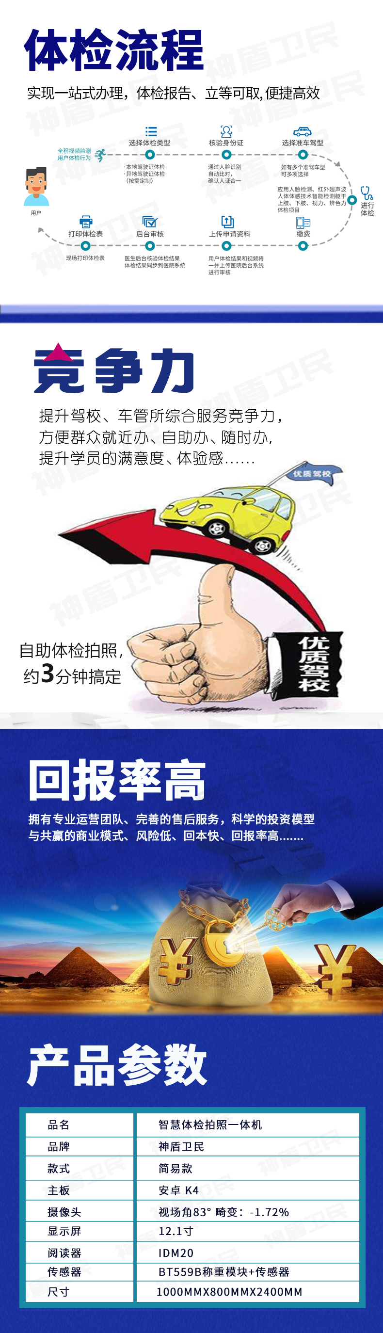 “駕駛員自助體檢機(jī)(安卓版)”是一臺集駕駛?cè)俗灾恼?、自助體檢功能于一體,融合人臉識別、多模態(tài)感知、人工智能算法、行為識別及多種UI交互等技術(shù),對人體行為進(jìn)行智能化檢測的自助設(shè)備。多應(yīng)用車管所、醫(yī)院、駕校等場景