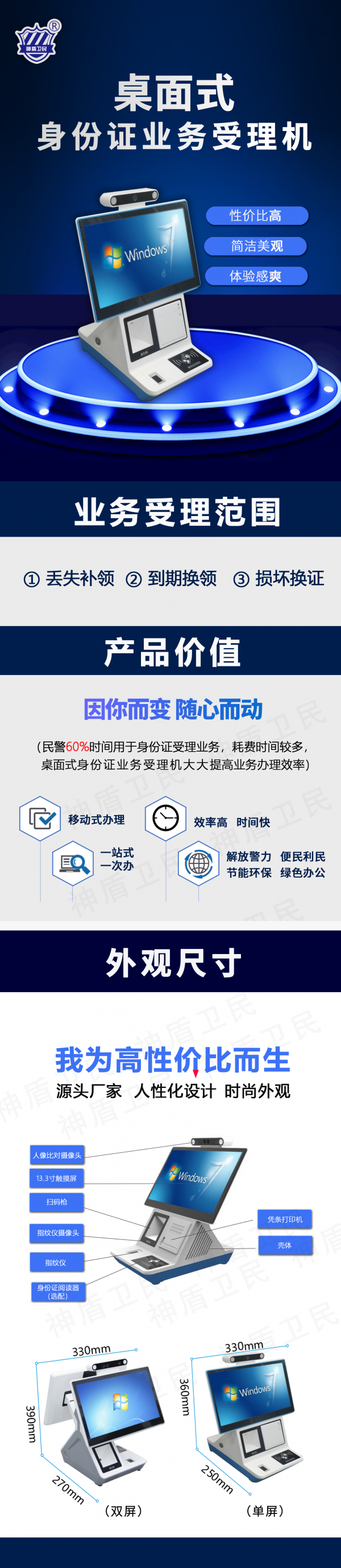 桌面式身份證業(yè)務(wù)受理機,身份證自助辦理機-神盾衛(wèi)民