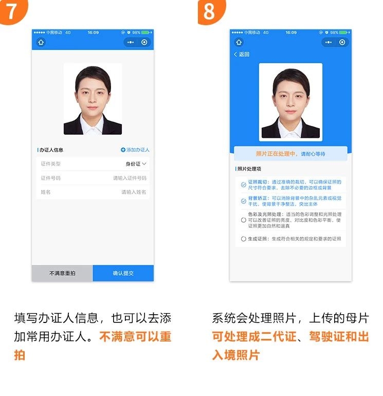 5、公安證件人像照片要求6個月內近照,照片合格后務必在6個月內辦理相應的證件,逾期作廢。